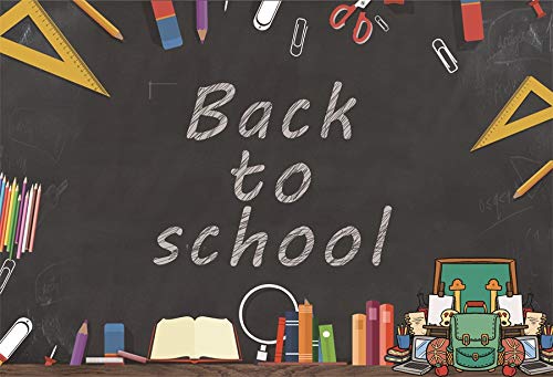 Baocicco 10x8ft Back to School Backdrop Chalkboard Ruler Clamps Crayons Eraser School Bag Books Pencils Photography Background School Season School Opening Day Children Students Photo