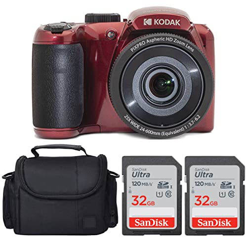Kodak PIXPRO AZ255 Digital Camera + SanDisk 32GB Memory Card (2) + Digital Camera/Video Case (Red)