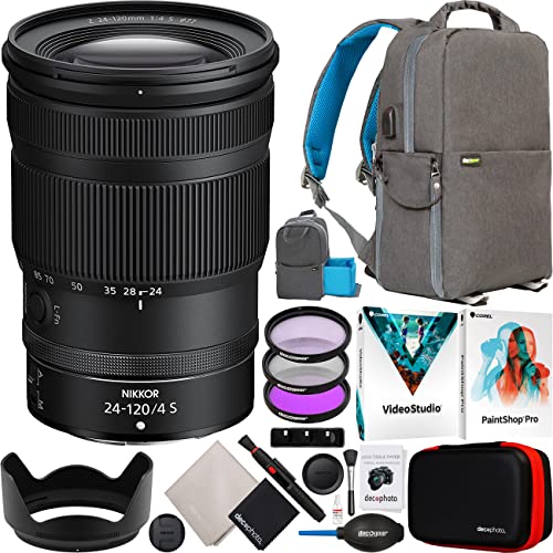 **Nikon NIKKOR Z 24-120mm f/4 S Full Frame Zoom Lens for Z-Mount Mirrorless Cameras 20105 Bundle with Deco Gear Photography Backpack + UV/Polarizer/FLD Filter Kit + Photo Video Software and Accessories**