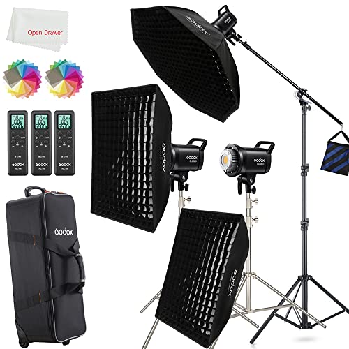 - Package Contents:*3 x Godox SL-60IIbi 60w bi-color LED Light,*2 x 110inch Light Stand , *1x Two Way Tripod Boom Light Stand with Sandbag *2 x 24*36inch SoftBox ,*1 x 37inch Octagon softbox *3 x Standard Reflector,*1 x Carry Bag for video recording,photography and wedding shooting,etc.