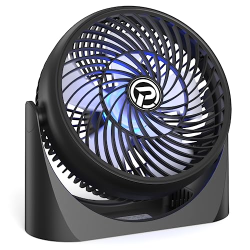 - 360° Adjustment: This desktop fan rotates vertically from 0 to 360 degrees to meet your needs. Adjust the wind direction as you like. The anti-slip rubber base reduces noise and vibration
