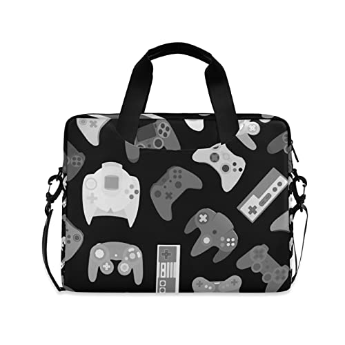 Seamless Vintage Video Game Controller Gadgets and Devices on Dark Laptop Messenger Bag Tablet Briefcase, Case Sleeve Suitable for 14 inches to 16 inches with Adjustable Shoulder Strap