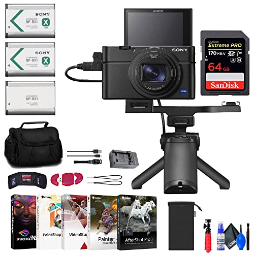 Sony Cyber-Shot DSC-RX100 VII Digital Camera with Shooting Grip Kit (DSC-RX100M7G) + 64GB Memory Card + Case + NP-BX1 Battery + Card Reader + Corel Photo Software + Charger + More (Renewed)